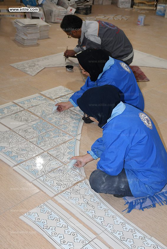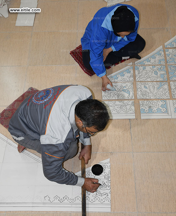 Carpet design on handmade tiles for floor