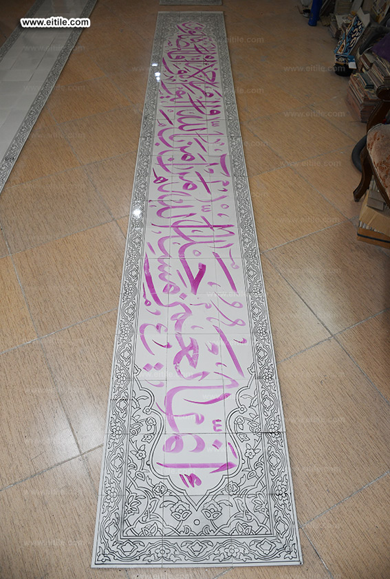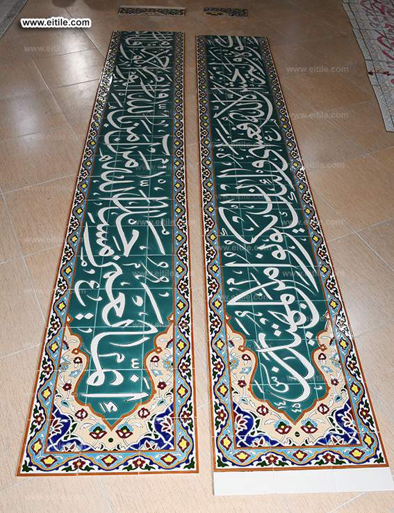 Handmade tiles with calligraphy, handmade tiles for mosque, handmade tiles with Quran calligraphy, Quran verses on handmade tiles, Quran verses in calligraphy on handmade tiles
